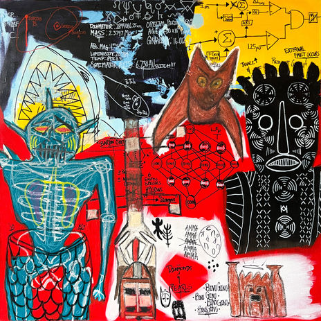 The Contemporary artist made his debut back in 2019 without any prior art background shocking viewers with twisted faces and vibrant color schemes. KūKs is a prime example of artists bleeding onto their canvases. He blends past experiences, knowledge about engineering/science, music, and just about anything his mind can absorb then reveals a story for the world to see. By maintaining a improvised like style when painting, KūKs is able to deliver pieces that show pure expression of self, while also giving the audience "dope to stare at for hours". Although still new to the art world, KūKs hopes that his approach to art will give opportunity for younger generations to have the courage to jump into anything they are interested in without hesitation.